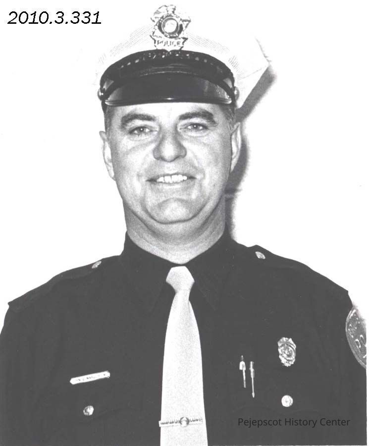 A B/W photograph of a Brunswick police officer, John Marquis Jr., who served as Dog Officer during the 1970s. No clipping. Undated