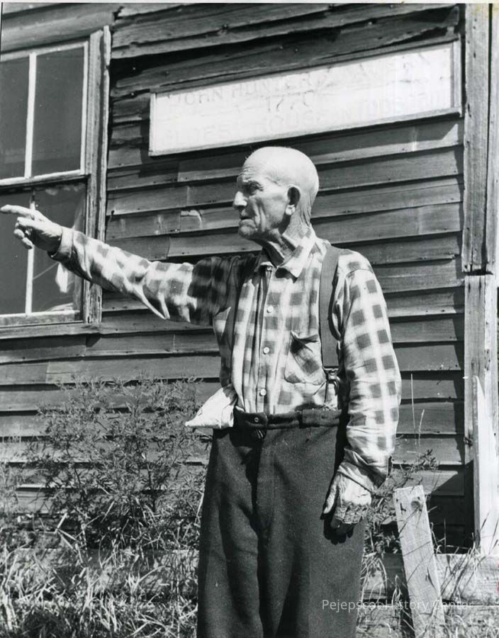 B/W photo of John P. Leavitt, standing in front of the John Hunter Tavern (also known as the Old Red House). According to a family member, Leavitt was born August 25, 1865 and died March 16, 1963. No date.