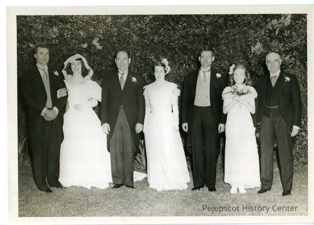 A photo of the wedding party at the Mary E. Johnson (Topsham) and Edward E. Butler (Belmont, MA) wedding. Undated