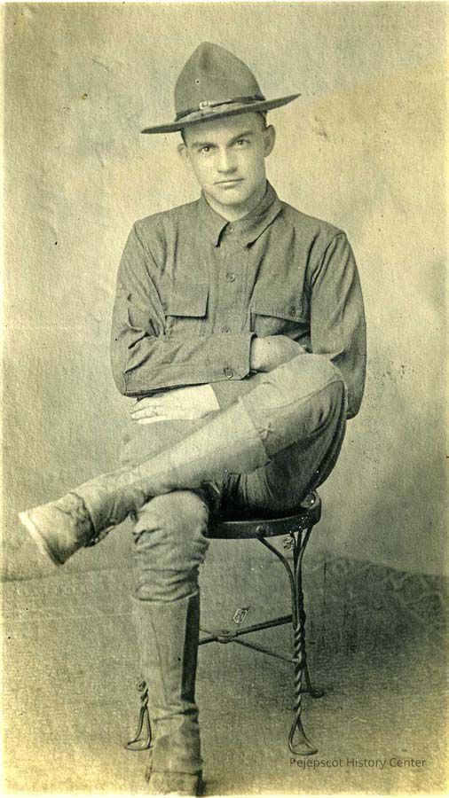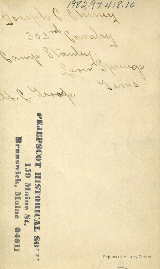 A sepia-toned photo of Joseph G. Cheney, a member of the 303rd Calvary at Camp Stanley in Leon Springs, Texas.