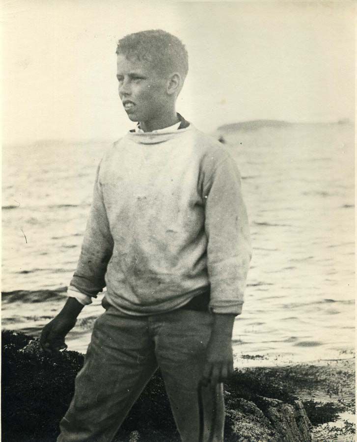 A sepia toned photo of Joseph Stetson, Jr. watching the acrobatics of the Round the World Flyers.