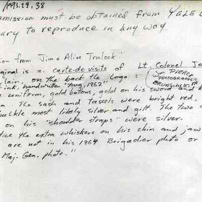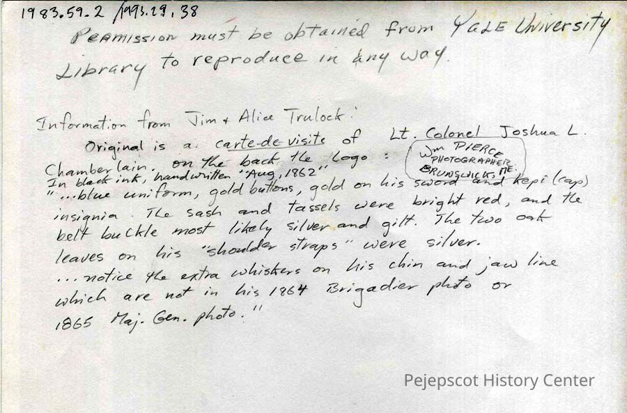 A B/W photograph of Lieutenant Colonel Joshua L. Chamberlain. This is a copy of a carte-de-visite which belongs to Yale University. 8/1862 Permission must be obtained from Yale University Library to reproduce in any way.