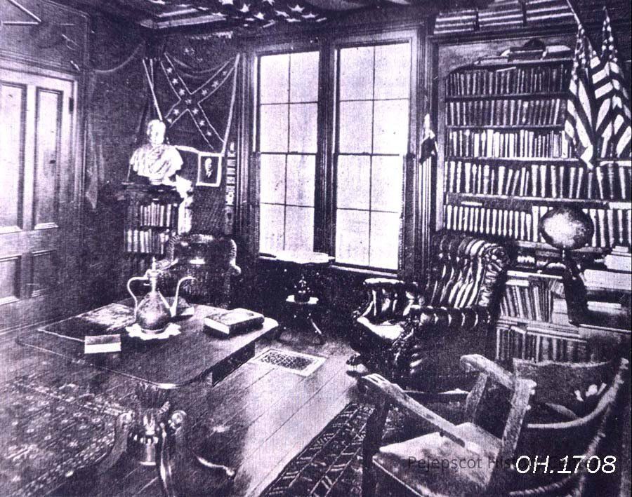 A B/W picture of Chamberlain's library was taken by the Lewiston Journal. They interviewed Chamberlain in 1907 at his home in Brunswick, ME. Undated
