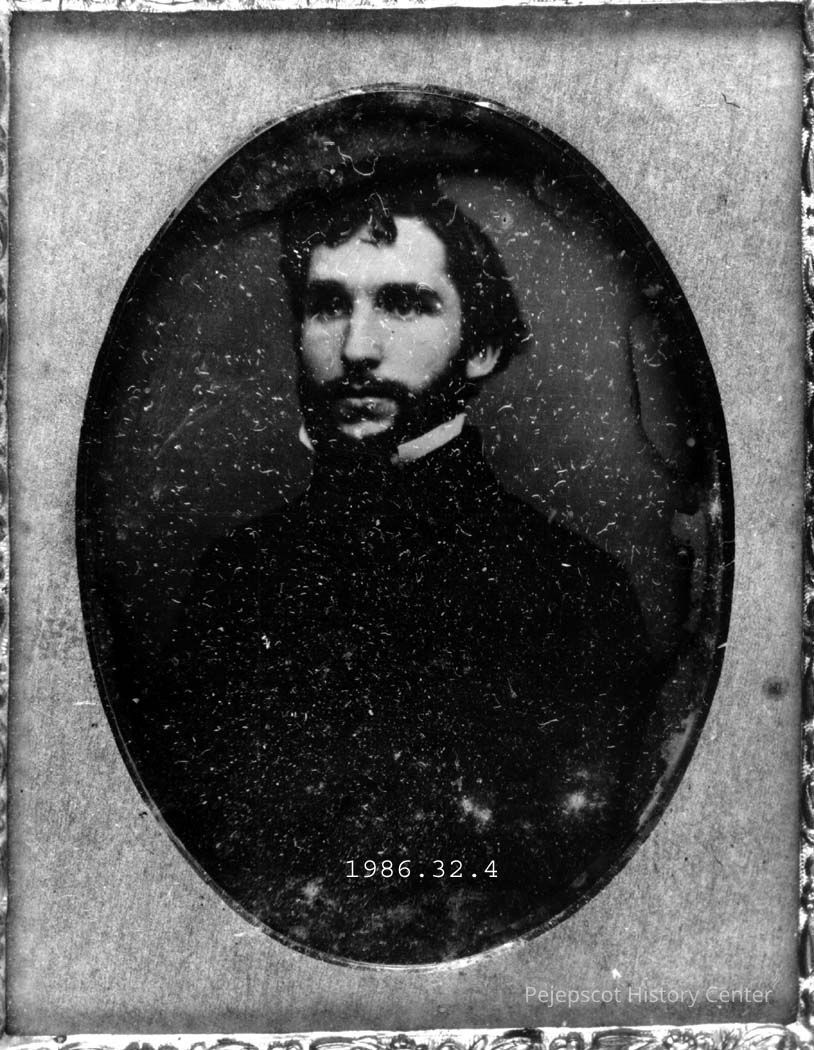 Daguerreotype photograph of Joshua Lawrence Chamberlain as a student in a decorative, gold frame. Pre 1857.