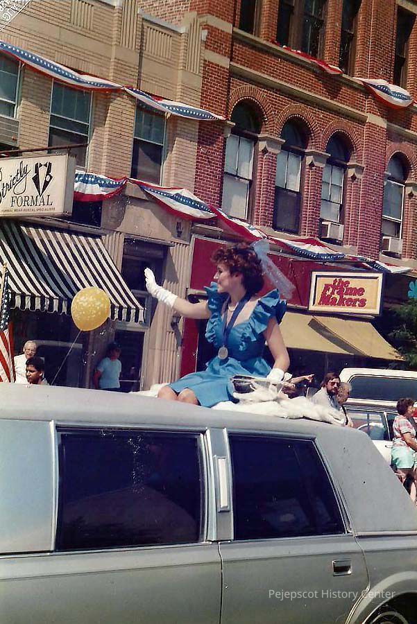 A color photograph of Jr. Miss 1987 Melany Harris in the Waterville 100th Birthday Parade, 8/6/1988.