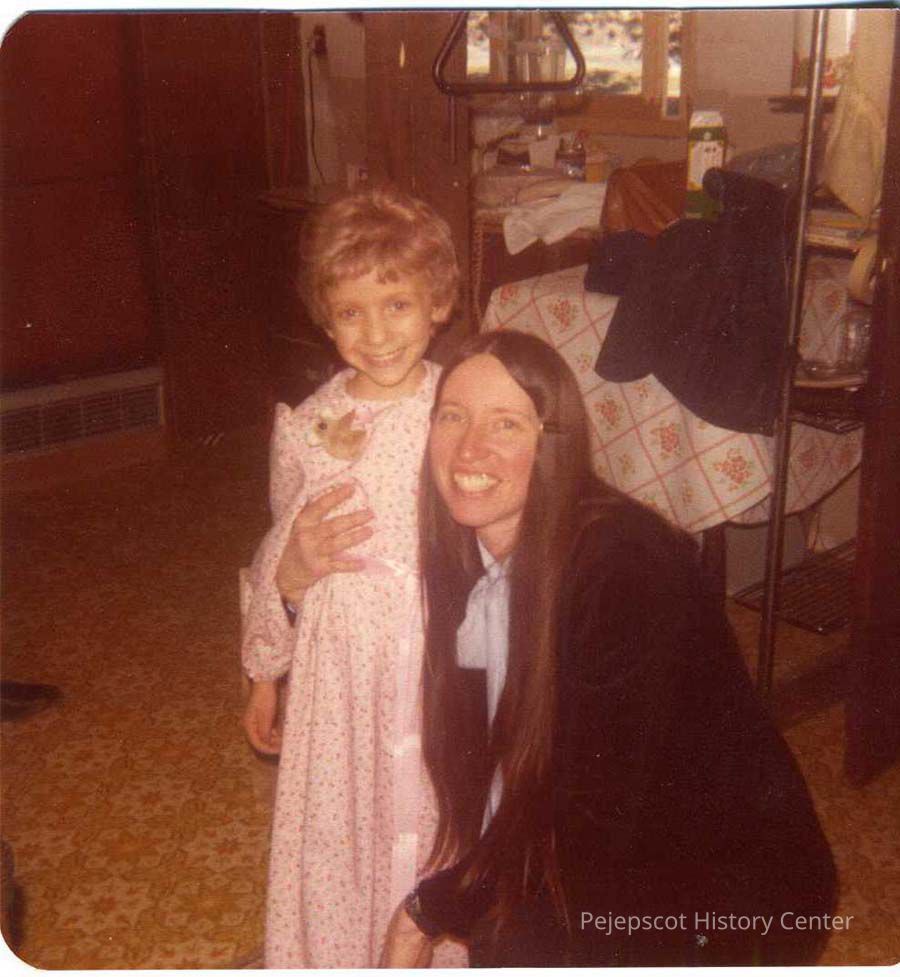 A color photographic view of Julie Bradstreet of Topsham, Maine, and an unknown woman. Julie suffered from neuroblastoma a rare form of cancer. She died on 6/17/1980.
