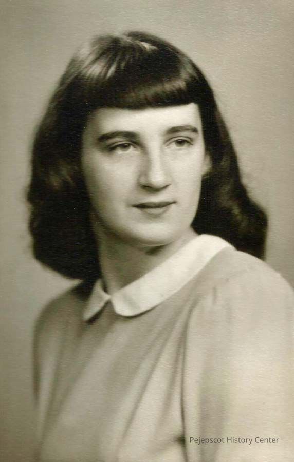 A B/W school photo of Juliette Metevier Hodgins BHS Class of 1948. Written on the frame, "Best of luck to a Wonderful girl. Juliette"
