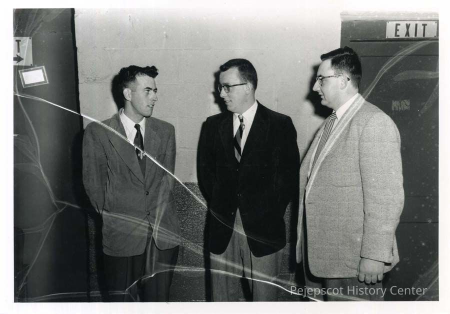 Black and white photograph of Junior Chamber of Commerce - 5/10/54.Paul L Saindon, Secretary, Albert P. Saindon, President, Russell J. Biette, TreasurerLexicon