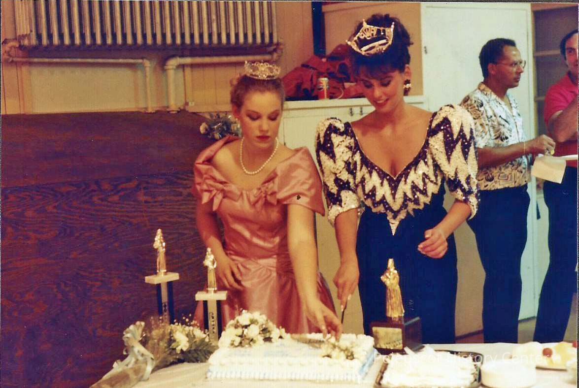 Katherine cutting cake & Darby Labbe is getting the cake distributed.Entry/Object ID