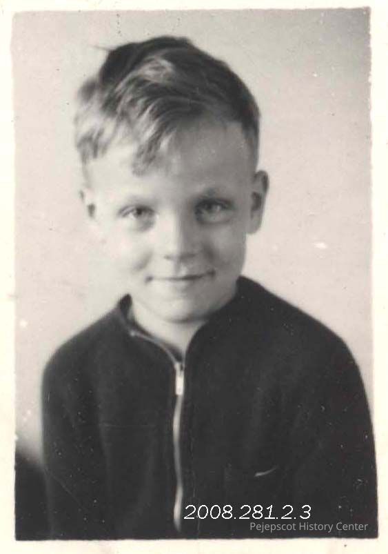 A small children's photo album with very small pictures of classmates in it. Class of 1949 (Growstown School?) This is a photo of Kenneth Berry. Undated
