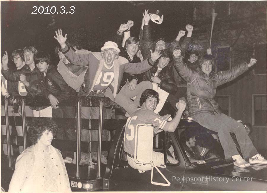 A B/W photograph of some kids in the back of a truck. The photo is labeled "Dragon Pride." Undated