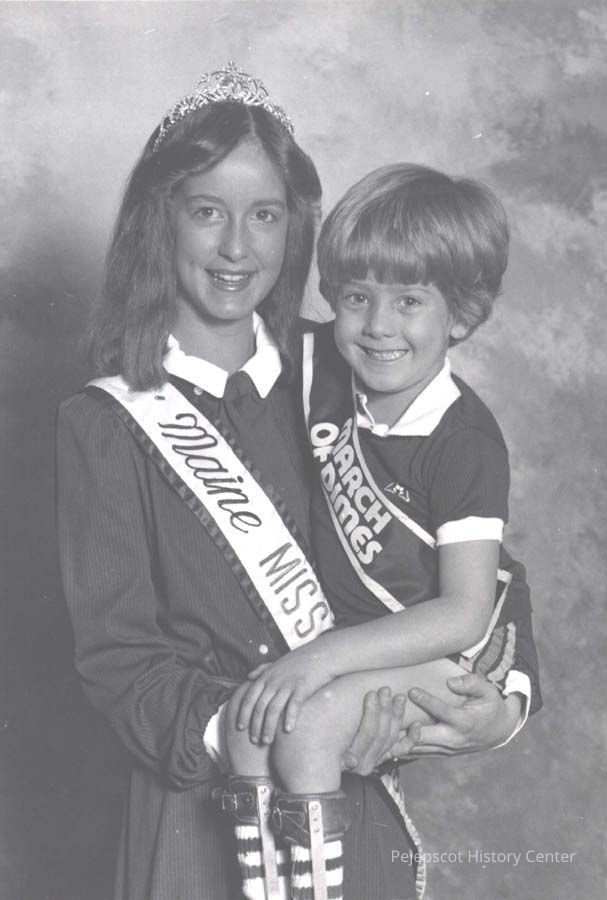 An undated black and white photo of Kim Kiraly, Maine Miss Teen of 1981, and Richard Wagner, the 1982 March of Dimes national poster child.