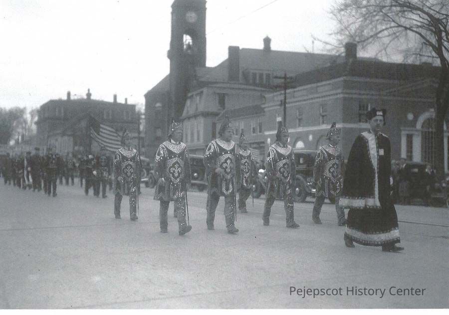 A B/W photo of the Knights of Pythias marchers in the Jubilee Parade. 04/19/1934