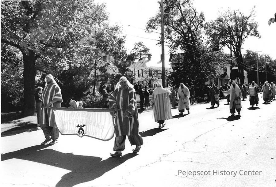 A B/W photograph of the Kora Shriners marching in Brunswick's 250th Anniversary Parade. 10/07/1989