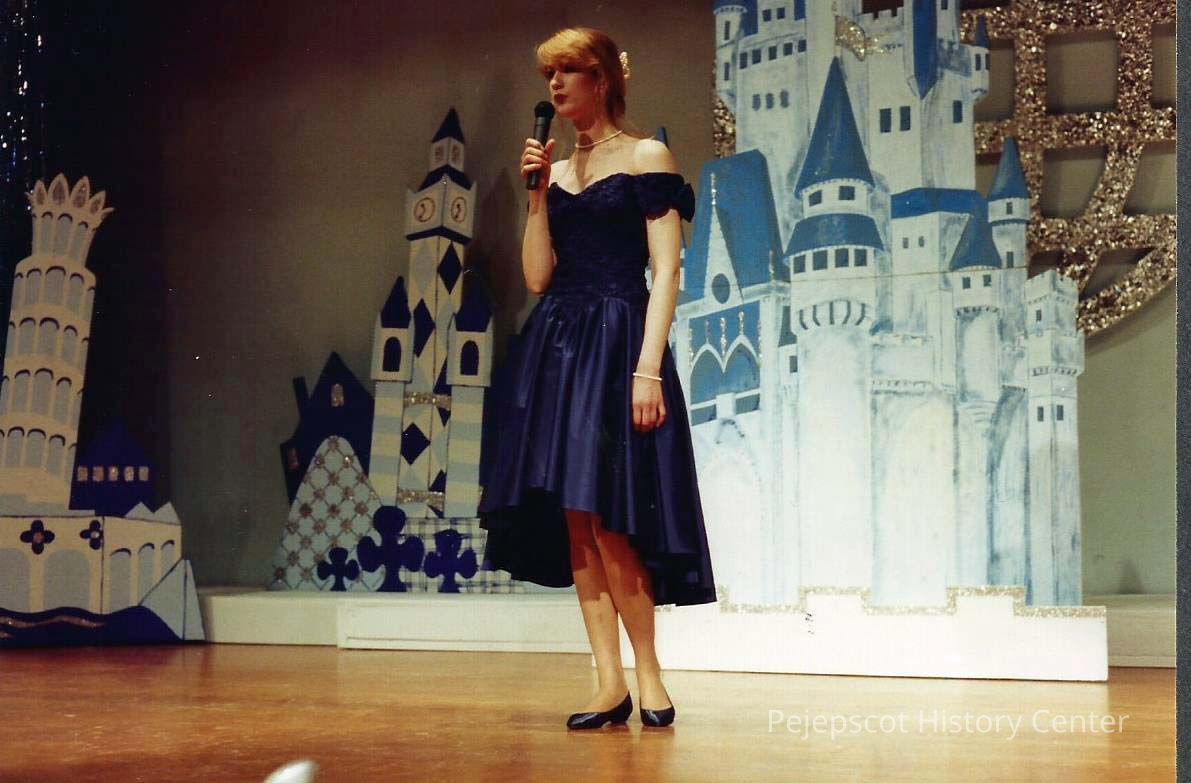 A color photograph of Kristen Stevens, participant # 4, singing for her talent. Photographer's # 3-8 CYO sponsored