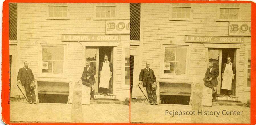 Stereopticon slides, Stereographs, L.D. Snow, Grocer, Grocers - Brunswick, Stores - Brunswick, Photographers - Portland, Architecture, Brunswick, Streets - Maine
