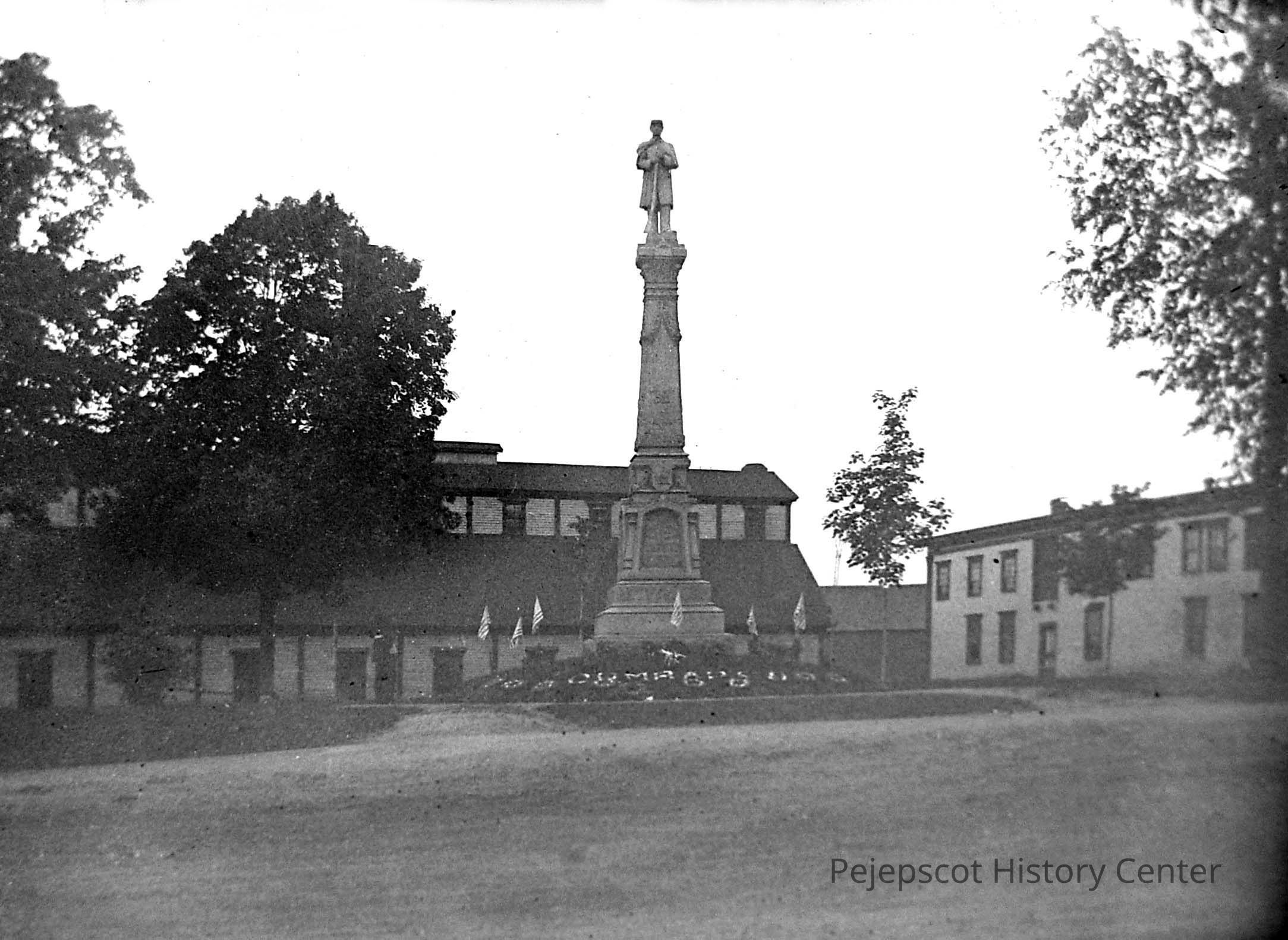 A glass plate negative with a photograph of an unknown statue high up in the air. "CD-R "Glass Negatives #2" #008 Undated.