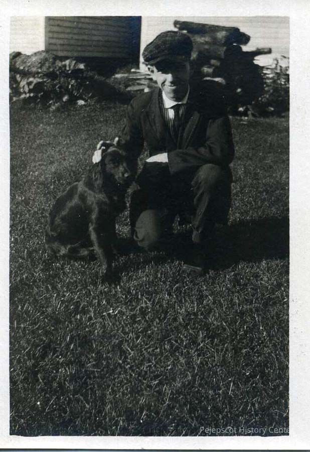 B/W photo of Laurence Pennell as a young man with a dog.