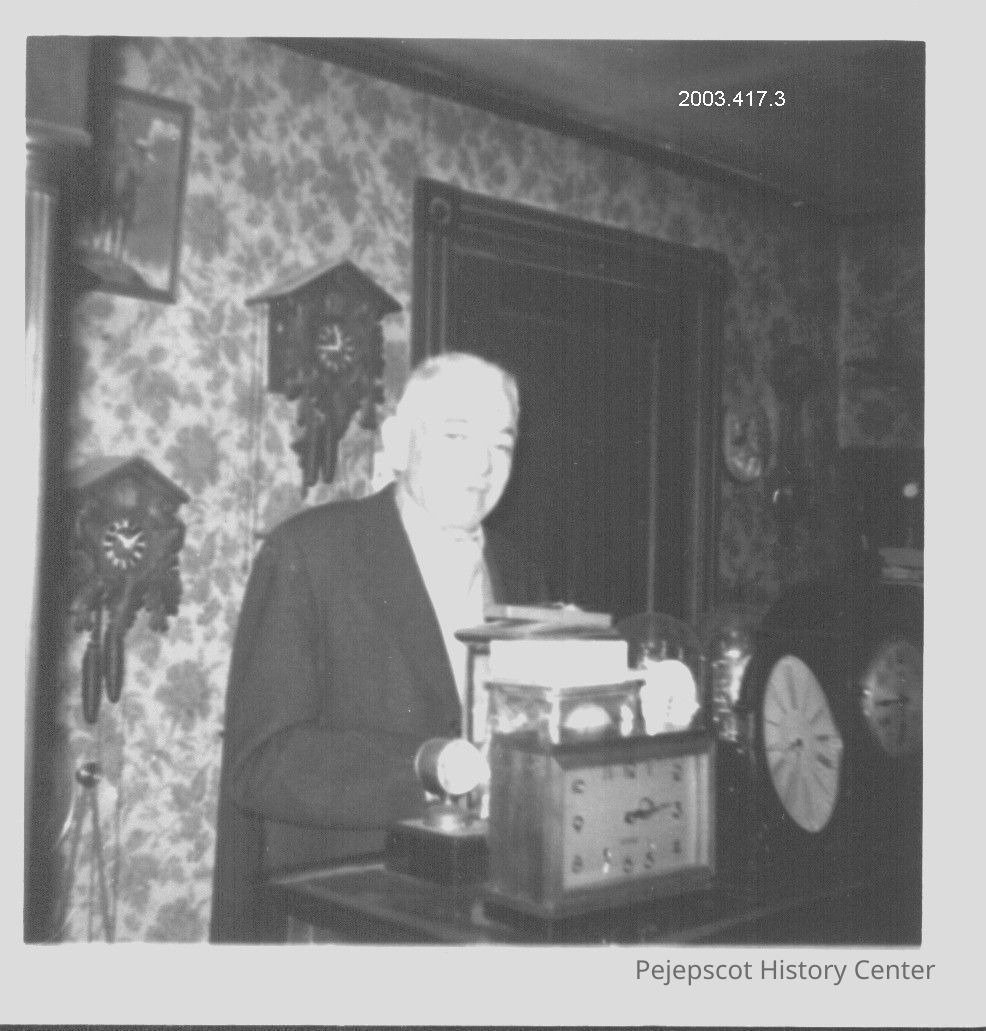 A photo of Laurence Shaw in his watch repair shop on Maine Street in Brunswick, Maine, was taken circa 1965.