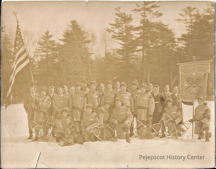 A B/W photograph of the Le Boucanier Snowshoe Club of Brunswick, Maine.