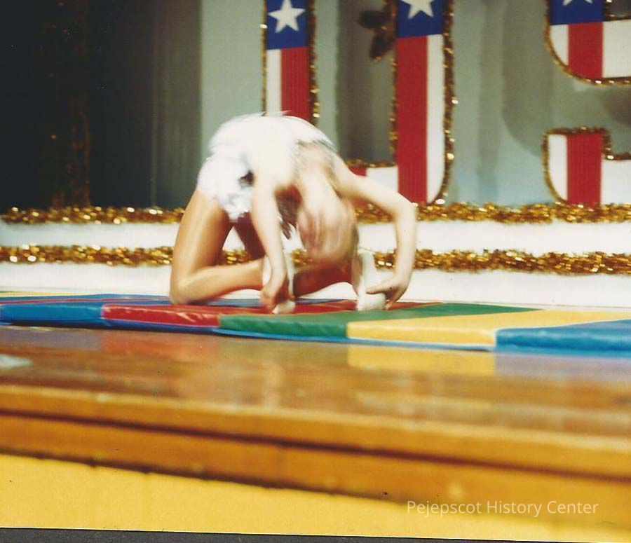 A color photograph of Leah doing her routine as at the circus. Photographers number 3-26 CYO sponsored