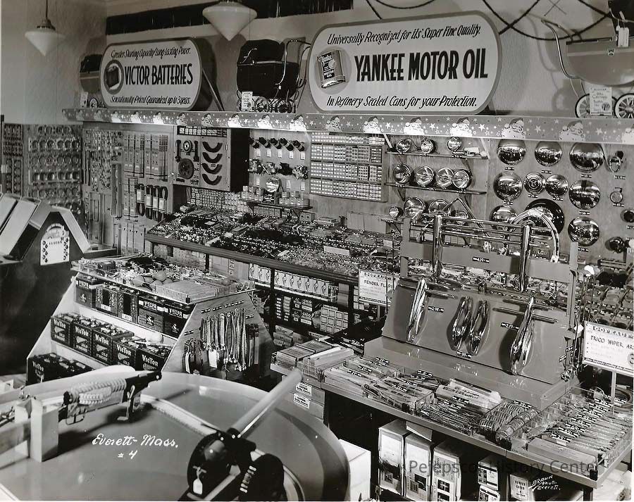 A B/W photograph of the automotive section of Leathers Department store. Marked on the photograph, "Everett-Mass #4"
