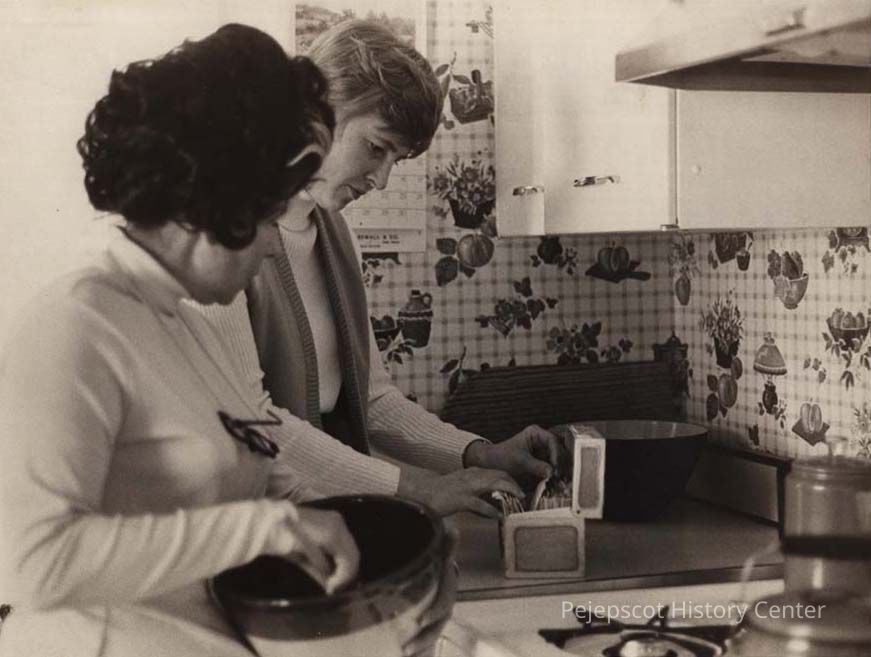 A black and white photo of Lee Kryger (foreground) and Judy Lamb was published in the Times Record in Bath, Maine, on 4/6/1976, accompanying an article about the Friends of the Bath Marine Museum.