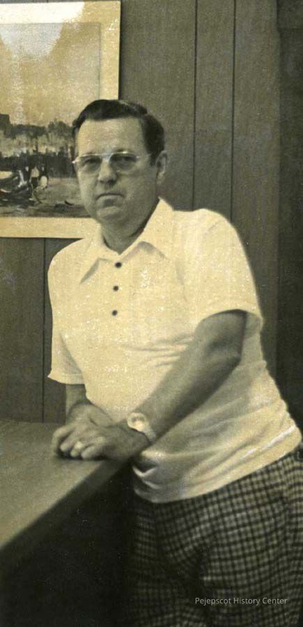 A black and white photo of Topsham Codes Enforcement Officer Leroy C. Neilson was published In The Times Record in Brunswick, Maine, on 8/13/1975. The full photograph also shows Topsham Town Clerk Louise St. Onge. The two were in the newly remodeled town offices.