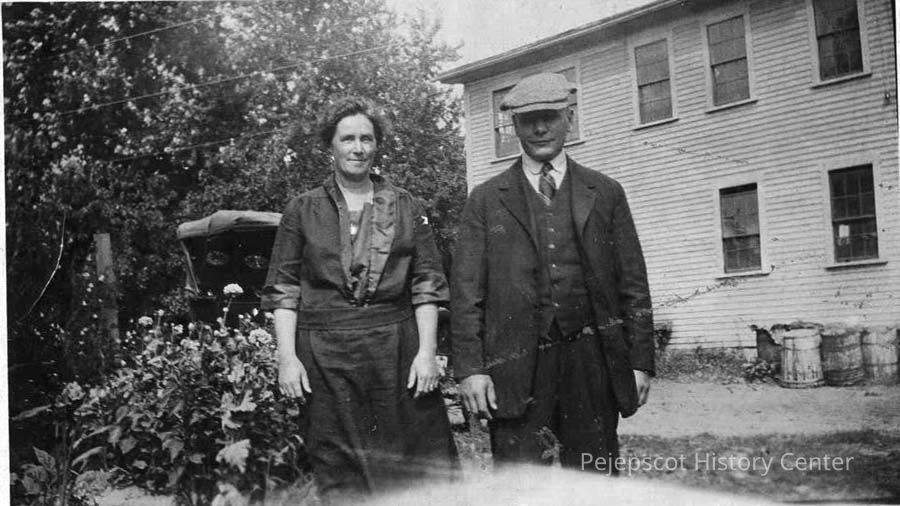 A B/W photograph view of Elise and Lew Hanson outside. Dated 1923.