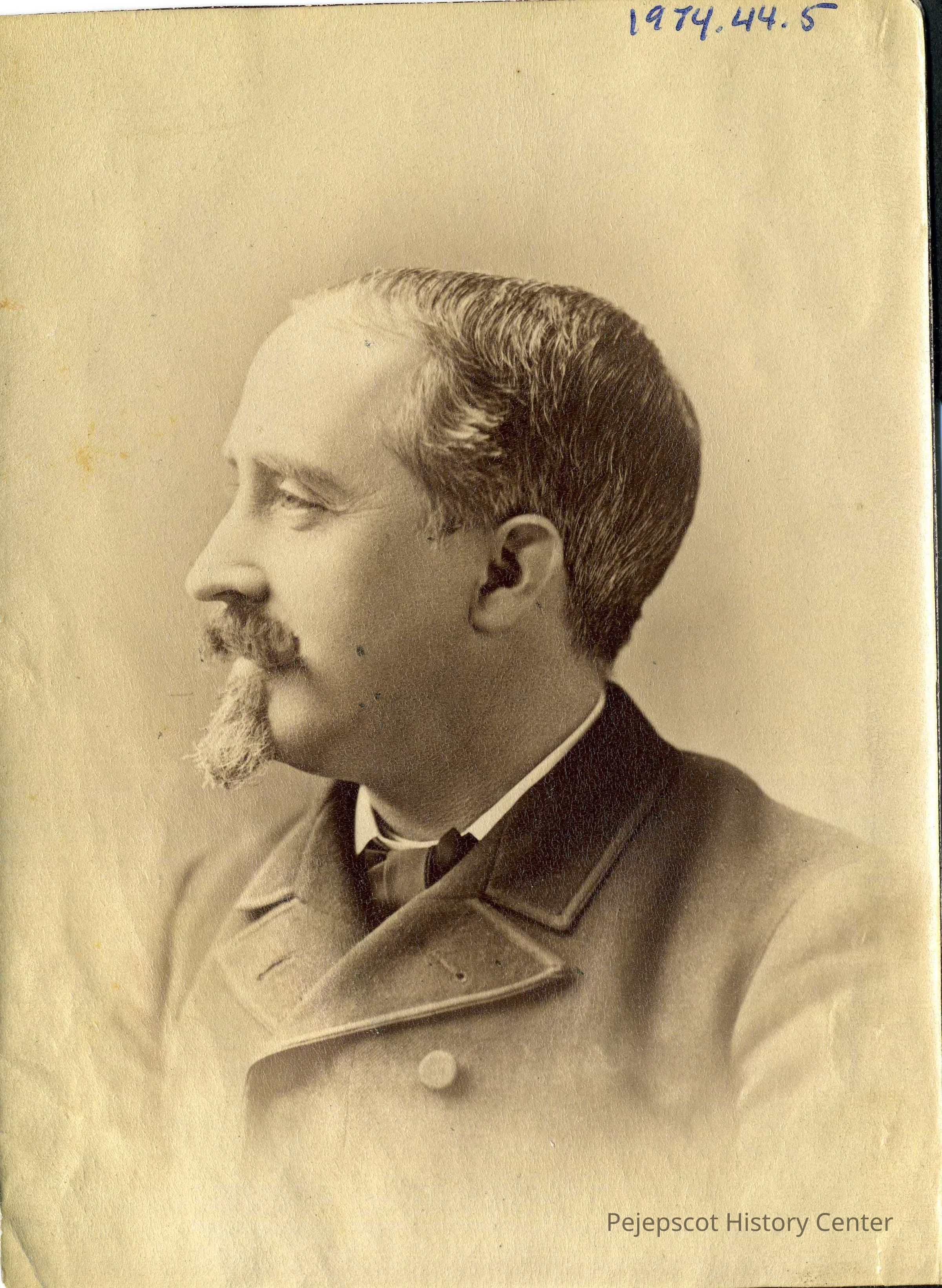 A B/W unframed photo of Charles F. Libby. Father of Hilda Ives. Mounted on black paper. 4 1/4" X 5 5/8". Not dated.
