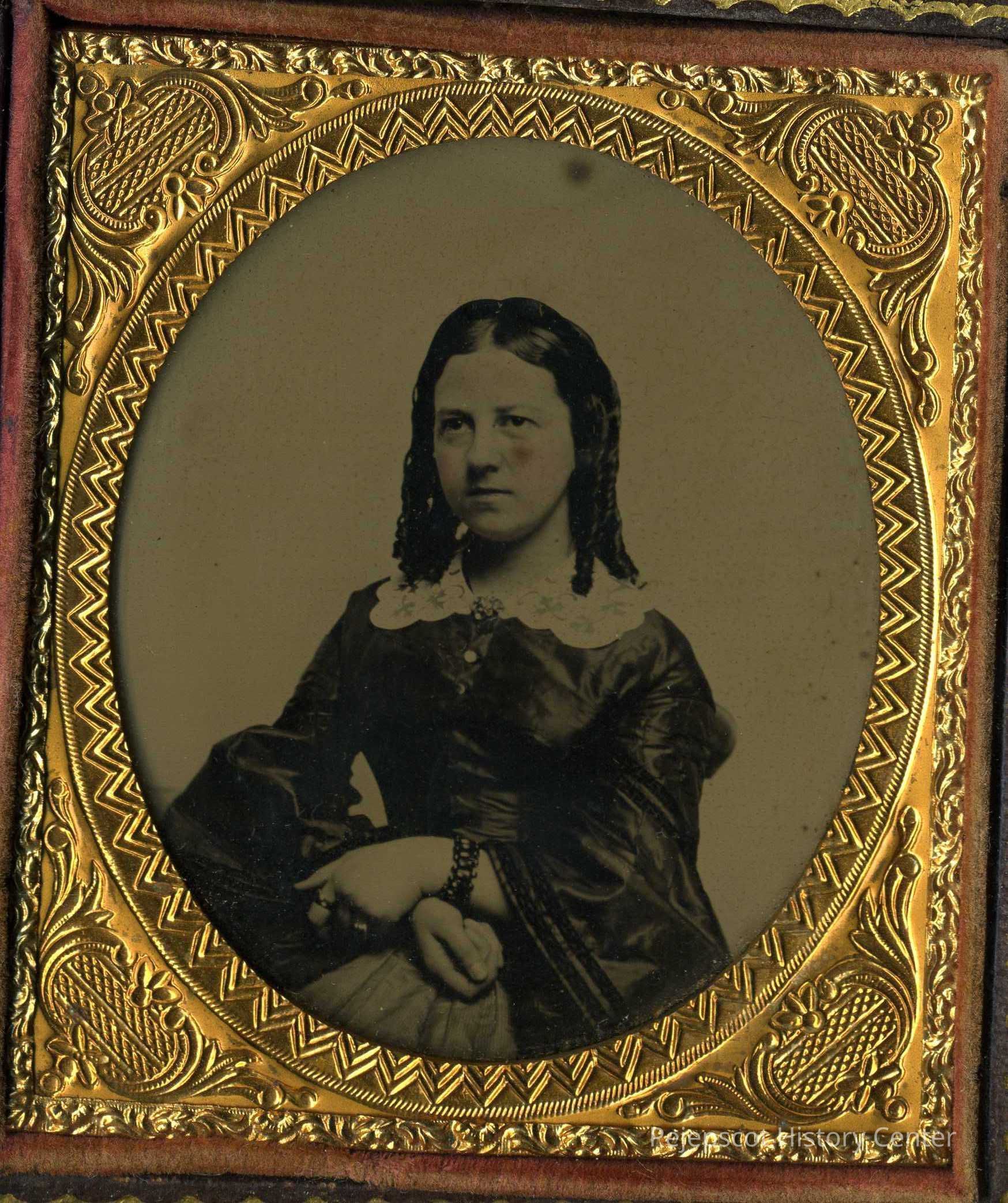 Daguerrotype of Harriet Robbins Libby. 3 1/4" x 3 3/4". Leather case lined with red velvet. Undated.