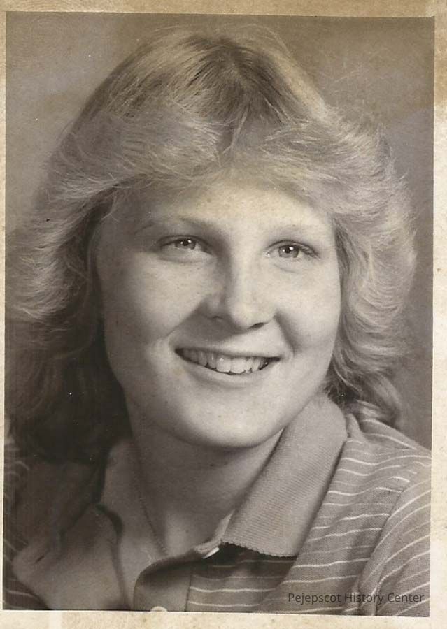 A B/W photograph of Linda A Foster, contestant number 5 in the 1982 Brunswick Teen Queen Pageant.