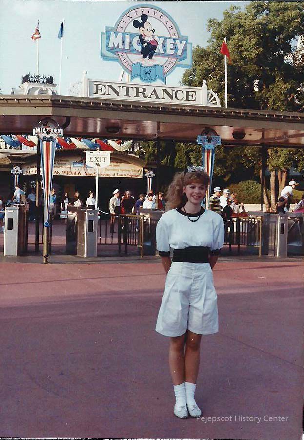 A color photograph of Lisa Kelly at the entrance to Epcot Center.Collection