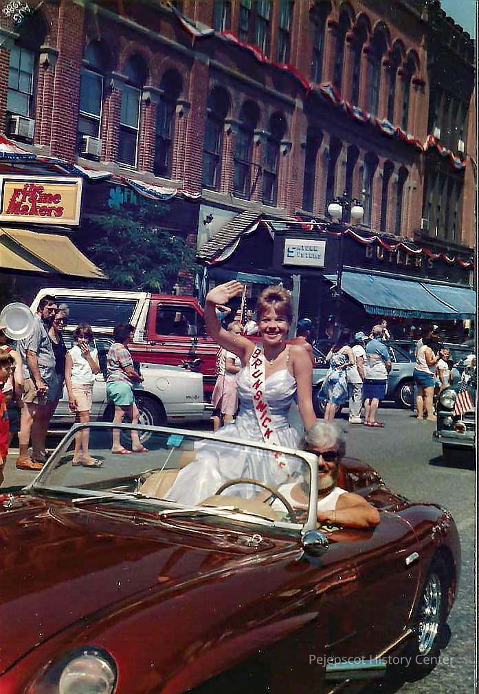 A color photograph of Lisa Kelly Brunswick Teen Queen in the Waterville 100th Birthday Parade 8/6/1988.