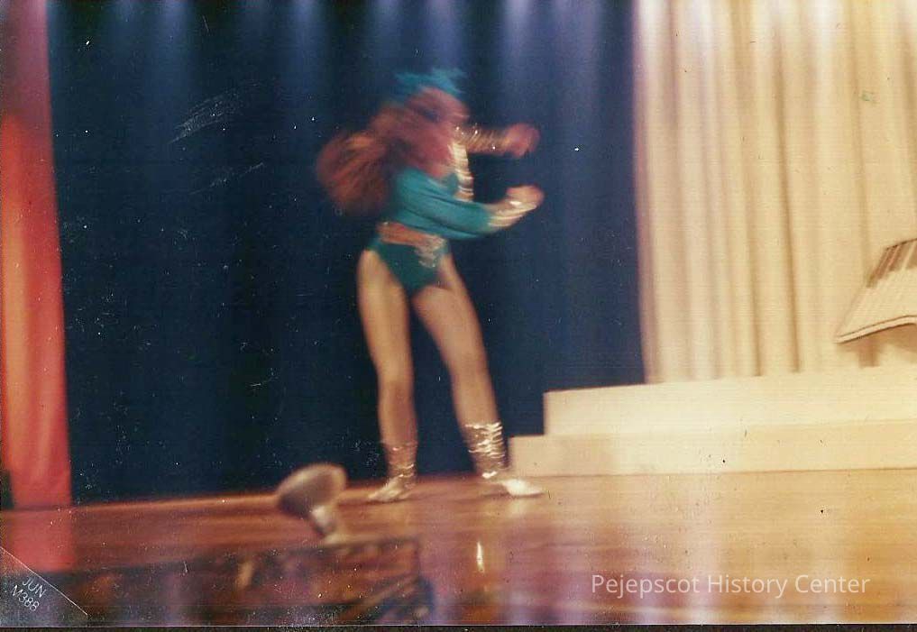 A color photograph of Lisa Kelly contestant number 3, doing her acrobatic dance.