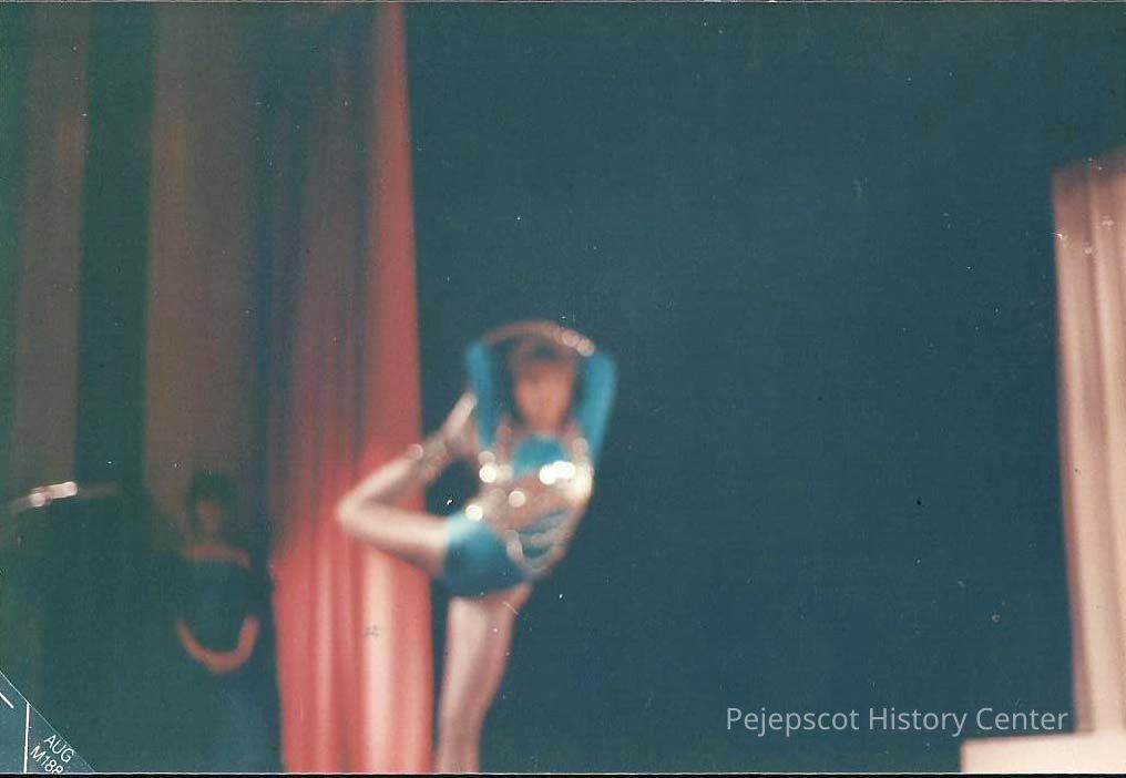 A color photograph of Lisa Kelly contestant number 3 at the end of her talent presentation.