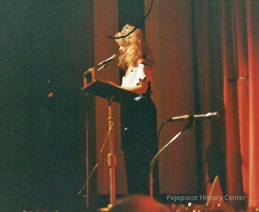 A color photograph of Lisa Kelly, Teen Queen 1988, M.C. for the second half of the pageant.