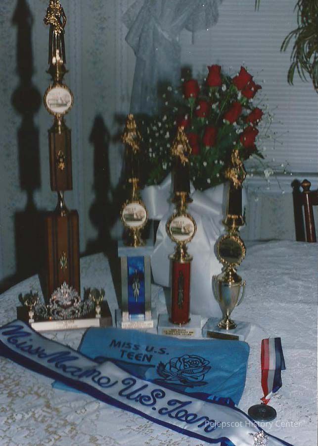 A color photograph of Lisa Kelly's awards and banners won in 1989,.