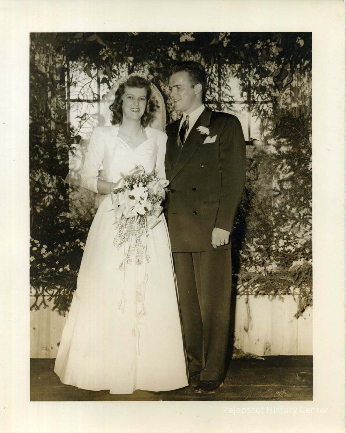 Picture of the bride and groom Mary Little and Richard A. Huggins. Undated