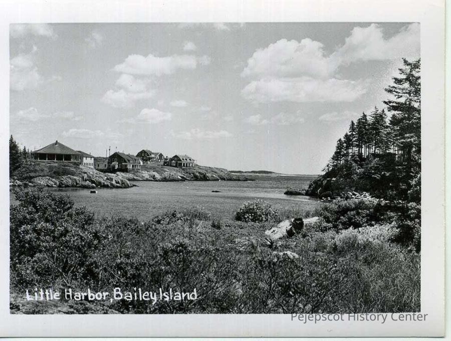 B/W photo of Little Harbor, Bailey Island, Harpswell.