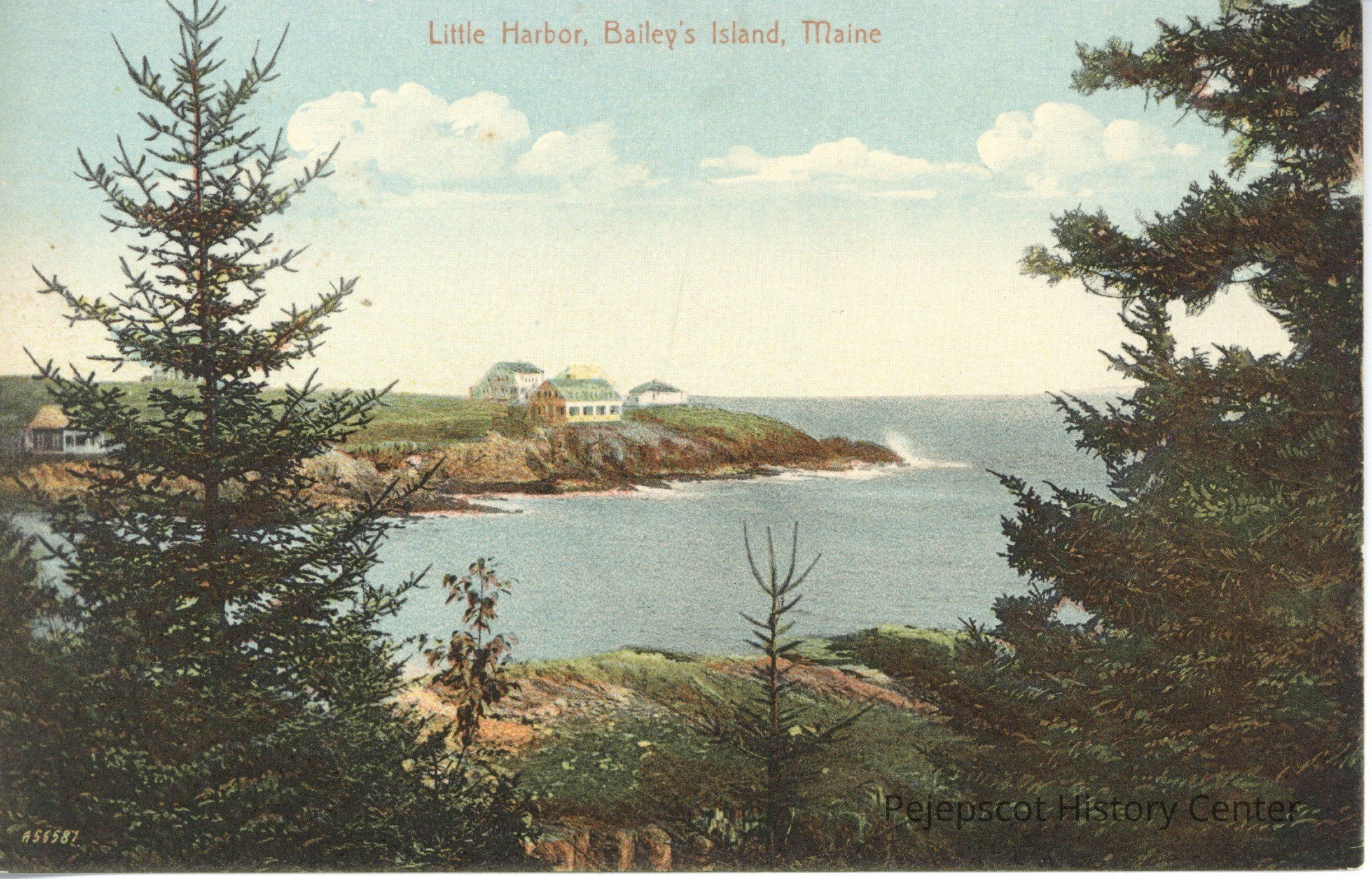 Color photo postcard of Little Harbor, Bailey’s Island, Maine.Collection