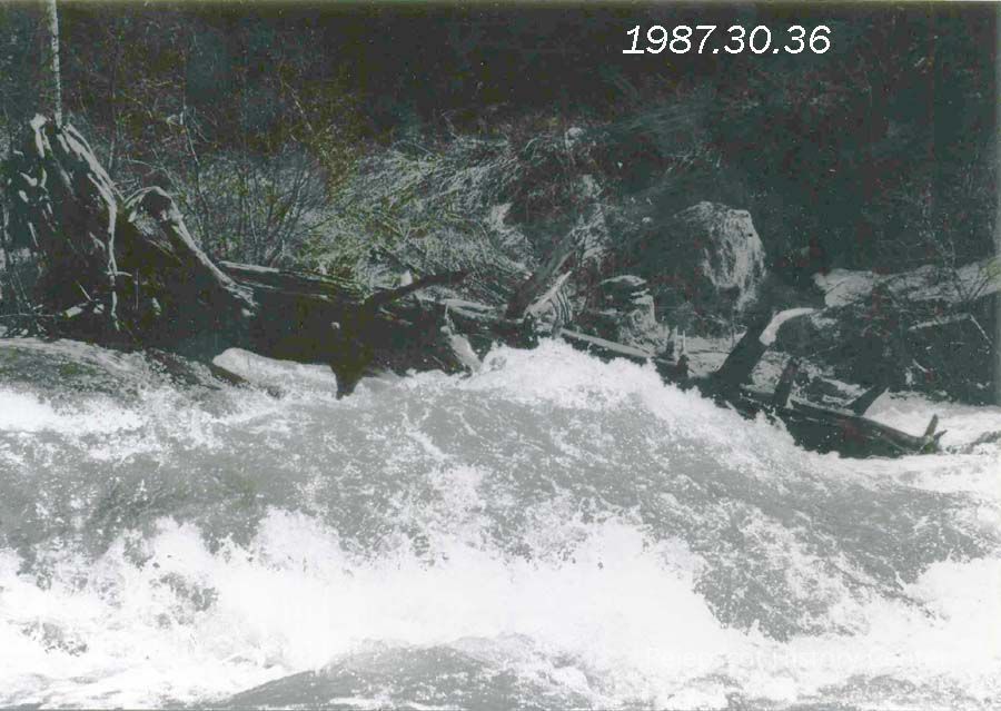 A B/W photograph of Little River Lisbon\Topsham line Rte. 196. Flood of April 2, 1987.