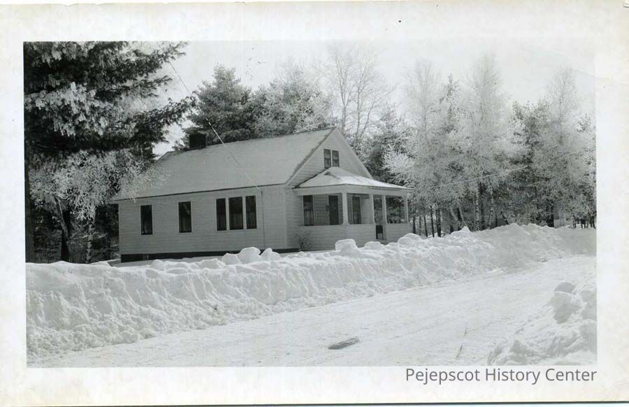 B/W photo of a house at 12 Lombard Street belonging to Alice (Pennell) and David Toothaker. Taken after a snow storm. on 2/24/52.