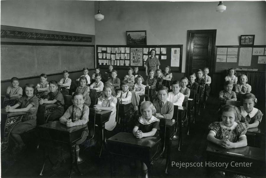 A B/W photograph of the Longfellow School Grade 3, 1937-38. Teacher is Miss Hermia Toothaker.