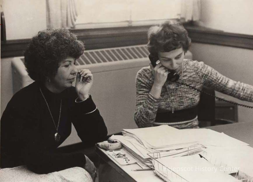 An undated black and white photo of Lorraine Chonko of Topsham and an unidentified woman.