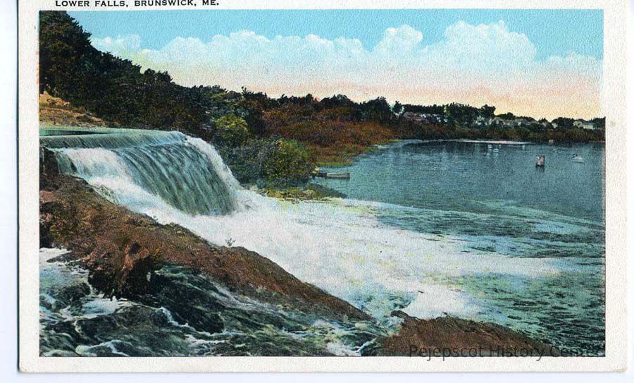 Color postcard of the Androscoggin River Lower Falls. Dupe of 1982.97.4