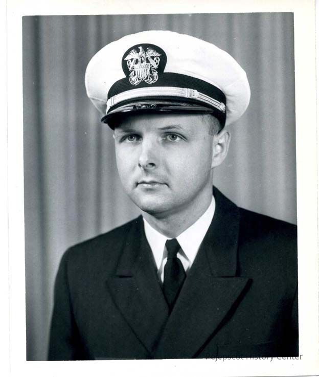 Head and shoulders portrait of Lt. Cmdr. Primich, Med. The back is stamped "U.S. NAVAL AIR STATION BRUNSWICK, MAINE AH 1597-9-63 OFFICIAL U.S. NAVY PHOTOGRAPH NOT FOR PUBLICATION UNLESS OFFICIALLY RELEASED." Undated