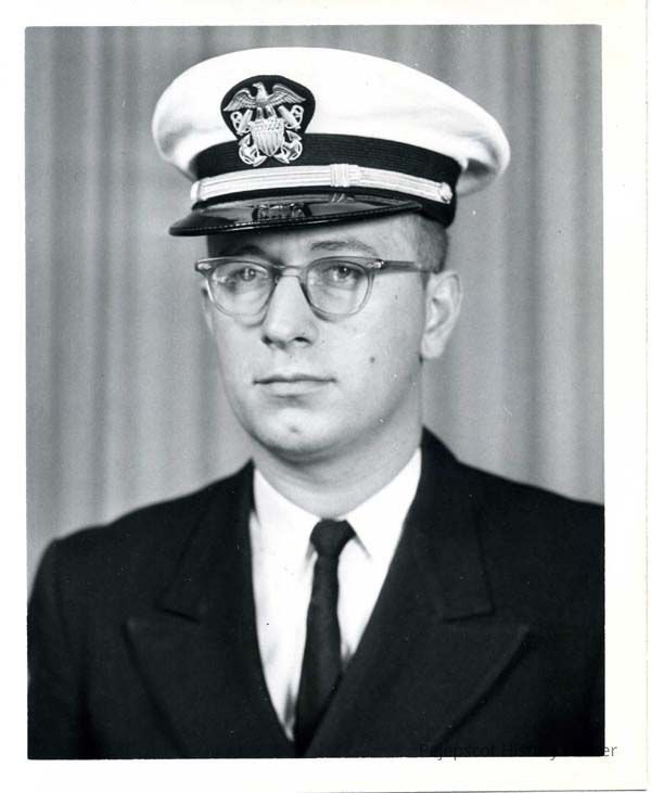 Head and shoulders portrait of Lt. JG. Walker. The photo is stamped with "U.S. NAVAL AIR STATION BRUNSWICK, MAINE AH 1565-10-63 OFFICIAL U.S. NAVY PHOTOGRAPH NOT FOR PUBLICATION UNLESS OFFICIALLY RELEASED." Undated