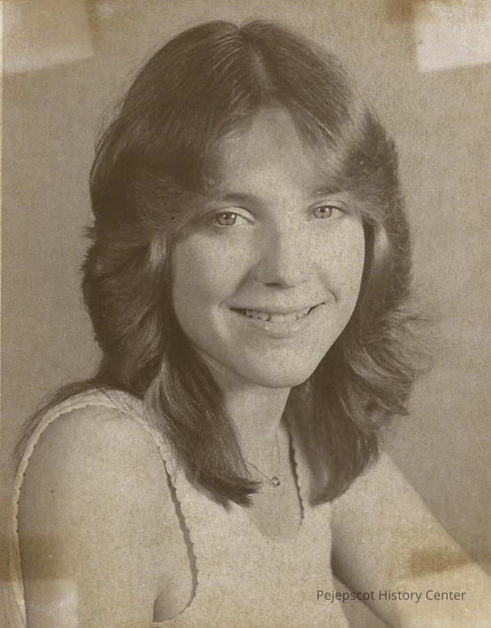 A color photograph of Lucie Morin, contestant number 9 in the 1980 Teen Queen Pageant.
