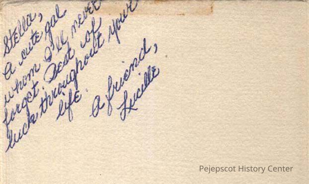 A B/W graduation photograph of Lucille Pinette, Brunswick High School Class of 1951. She gave the photo to Stella Purinton. Undated